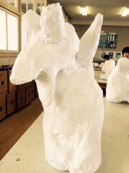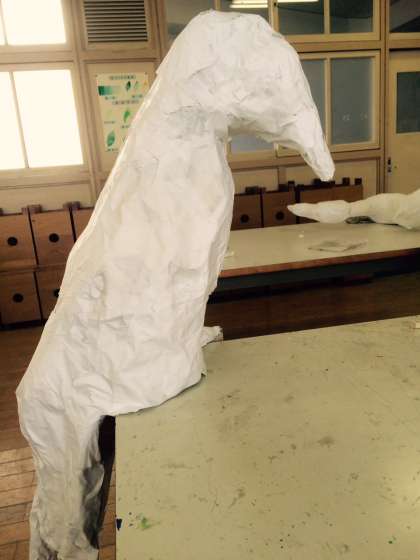ポスターカラーで色をつけて仕上がりです。2年生の子ども達、集中して作っています。