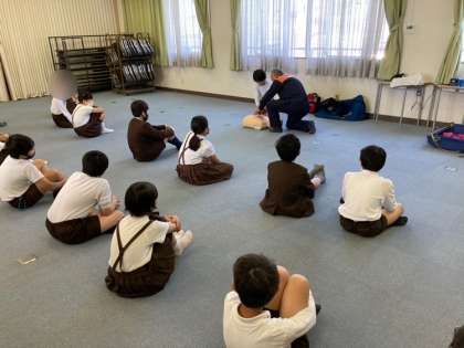 消防署の方から、災害時に取るべき行動や心肺蘇生法について教えていただきました。