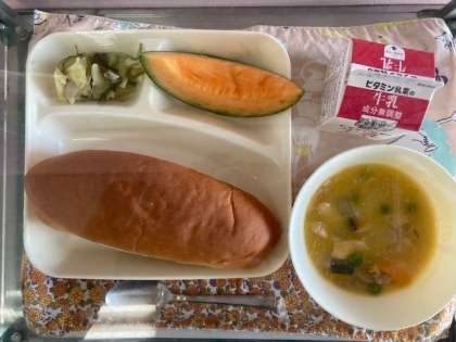 本日の給食に「クインシーメロン」がでました。クインシーメロンという名前は、女王(クイーン)と健康(ヘルシー)を組み合わせてつくられたといわれています。