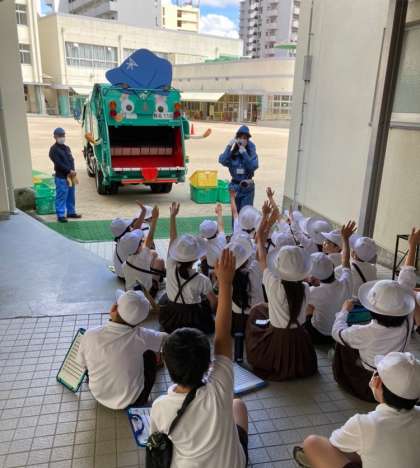 本日は4年生の子どもたちが大阪市環境事業局の皆様から環境について詳しく教えていただきました。2時間目、パッカー車についてのお話を聞いた後、乗車体験をしたりパッカー車クイズに挑戦したりしました。3時間目には、地球温暖化やごみの分別、3Rについて教えていただきました。みんなしっかりと学ぶことができました。