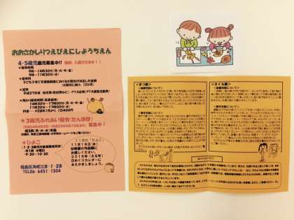 明日18日は、まつ組とさくら組の保護者参観日。そして、月に1度の「ひよこ」の日です。