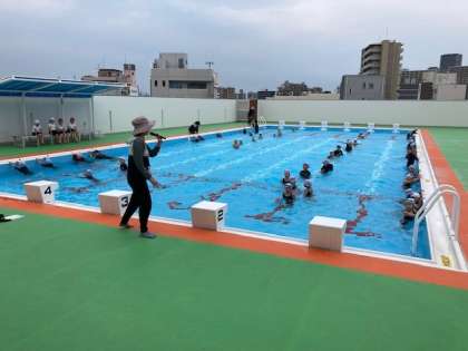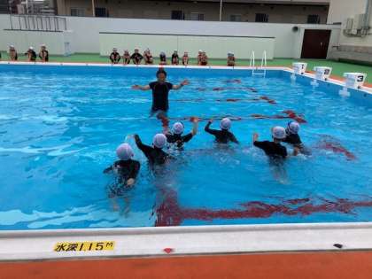 講堂の上から、子どもたちの大きな歓声が聞こえてきました。本日はプール開きの日。1・2年生の子どもたちが、楽しそうに活動していました。