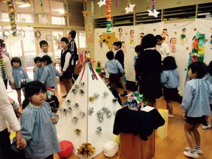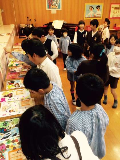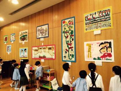 小学校の子ども達が、幼稚園の作品展を見に来てくれました。