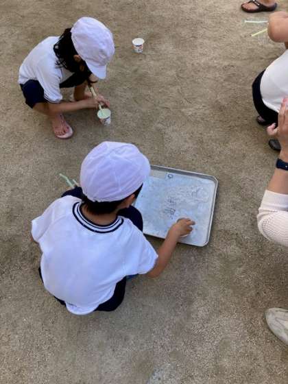 生活科で作った水てっぽうやシャボン玉作成道具を使って水あそびをしました。みんなとても楽しそうに活動していました!
