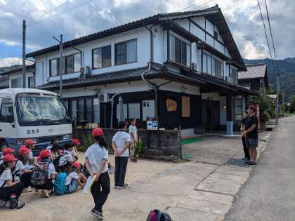 宿舎の高原亭さんについて、開舎式を行いました。係の人がしっかりあいさつをして、めあてを伝えてくれました。