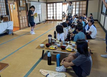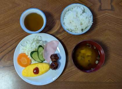 朝の集いが終わって、少しお腹も空いたところで朝ごはんです。オムレツを初めて見た子もあったようで、オムライスと間違えて中にご飯が入ってるやつ?という声も聞こえてきました。