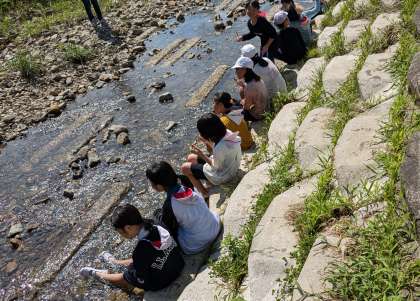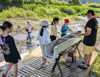 捕まえた魚をいただきます。はじめはにがいとか言っていましたが、結構みんなきれいに食べていました。