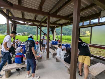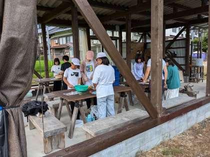 今日のお昼はカレー!自分たちで作ります。野菜を切って、薪で火をおこして、調理スタートです。