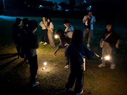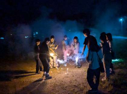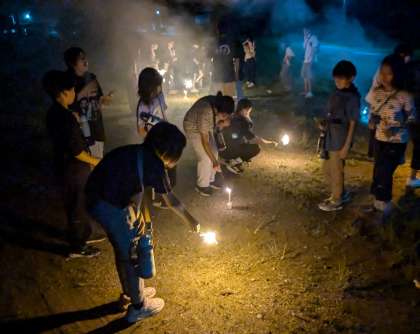ナイトハイクの最後に、みんなで花火をしました。手持ち花火をみんなで仲良く楽しみました。