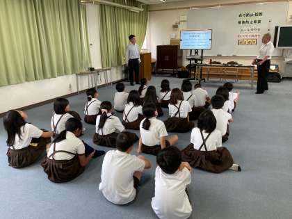 梅田少年サポートセンターより講師をお招きして、5年生児童対象に「非行防止教室」が行われました。「ルールを守ること」「相手に思いやりの気持ちを持つこと」「誘惑を断る勇気を持つこと」について、しっかりと学ぶことができました。