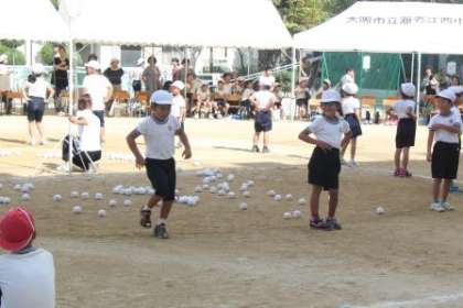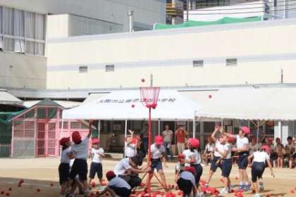 1・2年 チェッコリー玉入れです。