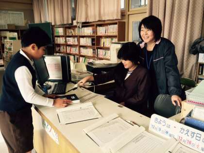 「今日は、図書館の先生が来てくださっています。昼休みと放課後、図書館が開いています。本を読みに行きましょう。」