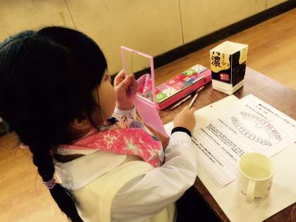 今日は、1年生が5時間目に歯垢染め出しをしました。きれいに磨けていたのかな?