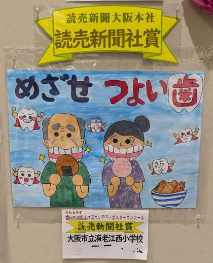 夏休みの課題の一つだった「歯・口の健康に関する図画・ポスターコンクール」に出品した作品が、『読売新聞社賞』1点と『入選』1点、選ばれました。おめでとうございます。11月6日まで中央図書館に展示されています。