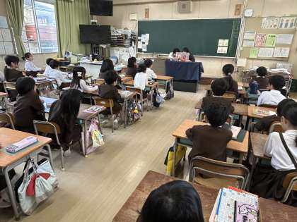 図書委員会の児童が朝の始業前の時間を活用して、紙芝居の読み聞かせを行いました。今日は1・2・3年生。みんなを紙芝居を楽しんでいました。図書委員のみなさん、ありがとうございました。