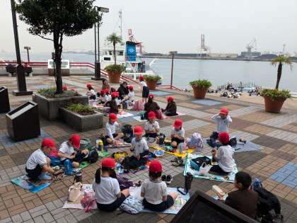 時々行き交う船も見えるところで、楽しく、美味しいお弁当をいただきました。おやつも嬉しそうに食べていました。