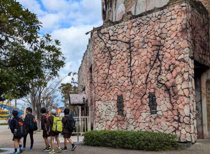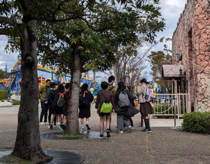 シューティングゲーム「アルカサルの戦い」にも挑戦しました。出てきたところで、3つの班が偶然合流。「あれが面白かった」、「いやいや怖いわ」などなど、情報交換してまた、楽しみに行きました。