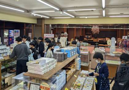 志摩ビーチホテルでのお土産タイムです。誰に渡すのか、いくついるのか、おこづかいの残りと相談しながら、買っていました。明日の鳥羽水族館でも買うようなので、いろいろ考え悩んで買い物していました。