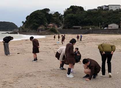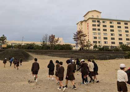 朝の集いのあと少しフリータイム。砂浜の貝殻やシーグラスを探して、散策後、朝ご飯を食べに、志摩ビーチホテルに戻りました。
