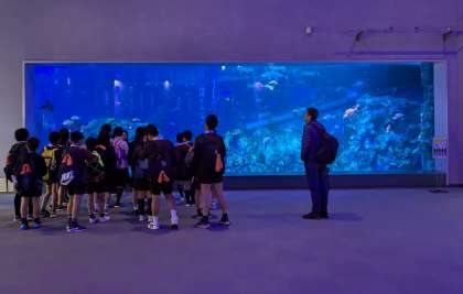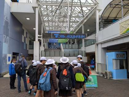 団体としては一番乗り。まず、みんなラッコの餌やりの見学に向かいました。