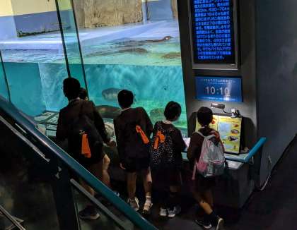 バイカルアザラシを見たり、クラゲを見たりと様々な生き物を見て回っています。