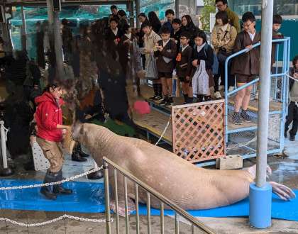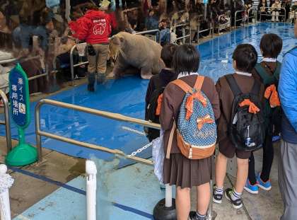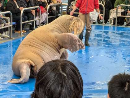楽しみにしていたセイウチふれあいタイムを見ました。大きなセイウチが声に反応して動作をしたり、食事の仕方(吸い込んで食べる)を見たりできました。大きいけど仕草がとてもかわいらしかったです。
