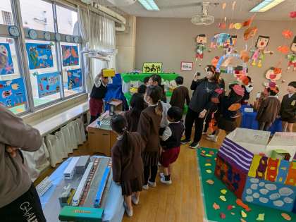 最後に2年生と4年生が見学に行きました。これまでの学年でもそうでしたが、海老江西幼稚園の卒園生が、懐かしそうに自分たちのときはこんなだったと話しながら、作品を見ていました。
