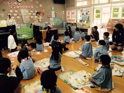 小学校の始業式が終わり、9時45分からは幼小連携の交流活動の時間です。