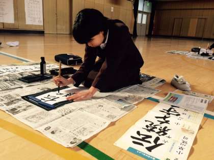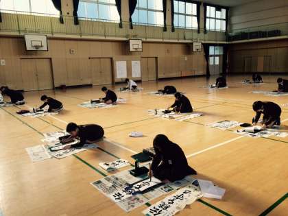 6年生、3学期初めての授業は書き初めです。