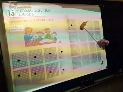 ここを見てと、指示棒で押さえたり、丸磁石を教科書の上に置いたりしながら、担任の先生は子ども達に説明をしています。