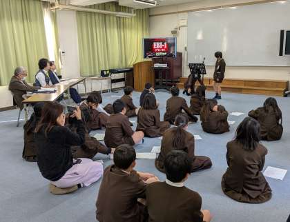 今日は、吉本から漫才コンビ『茜250cc』のお二人に来てもらって、子どもたちが年末から練り上げてきた漫才を披露しました。