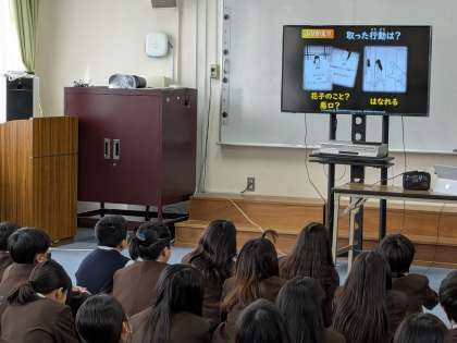 高学年では、SNSを使ったコミュニケーションで、文字だけで伝えることの難しさを、劇画調の漫画で、わかりやすく教えてもらいました。直接話をすると、声の大きさや話す速さ・大きさなどで伝わることも、SNSによる文字だけになると伝わらず、違った伝わり方になることがあるということが、わかりやすく解説してもらいました。