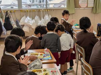 11日の火曜日の給食の時間に、幼稚園のみんなが6年生にお礼のお手紙を持ってきてくれました。