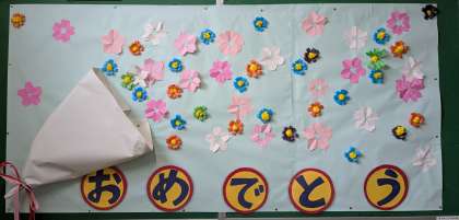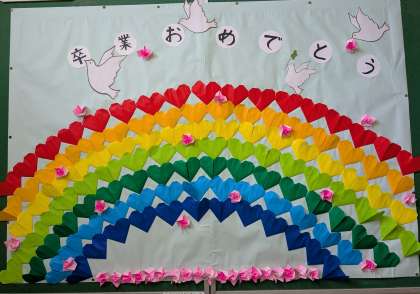 階段の掲示板にお祝いの掲示もできて、いよいよ明日は、卒業式です。