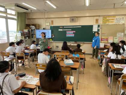 6年生の教室では、何やら楽しそうな雰囲気で英語の学習が行われていました。今日の目標は、「出身地や住んでいるところを伝え合うことができる!」です。みんな、うまく伝え合うことができたかな。