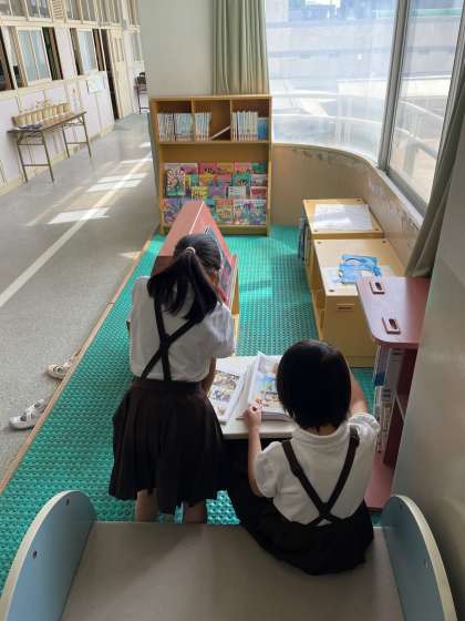 海老江西小学校には、2F〜4Fに読書スペースがあります。休み時間に、集中して読書をしている姿が見られました。