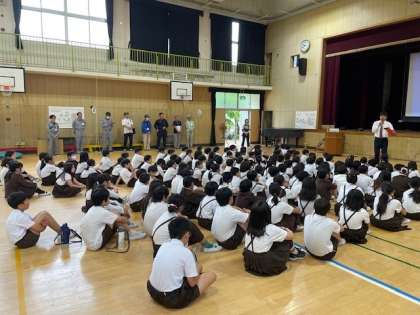 地域防災リーダーや消防署、区役所、社会福祉協議会の皆様の協力のもと、地域防災減災学習が行われました。雨のため、変更されたプログラムもありましたが、たくさんの保護者の皆様に見守られながら、子どもたちはしっかりと体験したり、学んだりすることができました。そして、最後には引き渡し訓練も行われました。