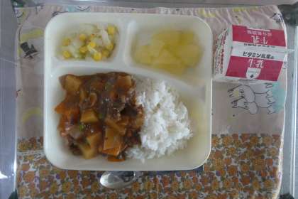 大阪市の給食では、小麦アレルギーのある人も食べることができるように、米を粉にして作られる米粉(上新粉)でとろみをつけています。