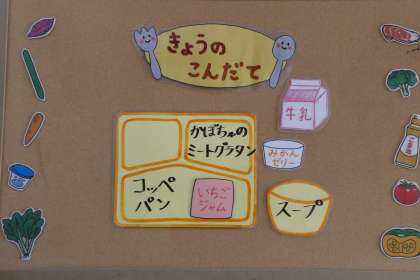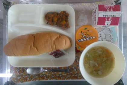 給食では、日本でよく食べられている西洋かぼちゃをミートグラタンや夏野菜のカレーライス、焼きかぼちゃのあまみつかけなどに使っています。