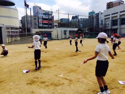 インフルエンザで2/4〜7まで休業していた2年い組は、体育学習ができるほど、皆元気になってきました。