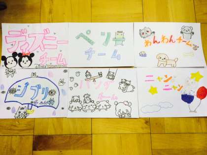 この写真は、5年生の子ども達が6つのグループに分かれて、新1年生を案内するために作ったポスターです。かわいい名前でしょ!名前のカードも作っています。