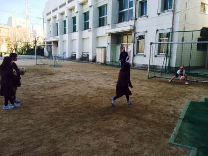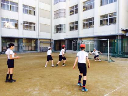 いつもは、AとBは運動場と講堂にわかれて活動していますが、3学期は講堂の天井工事のため、講堂が使えません。そのため、一緒に活動しています。