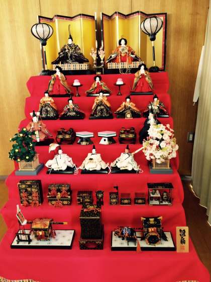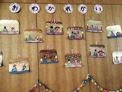 プレールームの正面には、さくら組の園児が作った「おひな様」が飾られています。