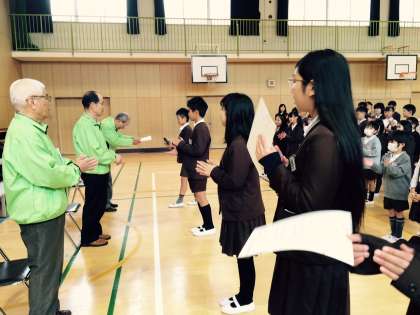 3月7日(月)、全校児童朝会の時間に「見守り隊のみなさんへ感謝の会」を行いました。ご都合のついた3名の方がご出席いただきました。
