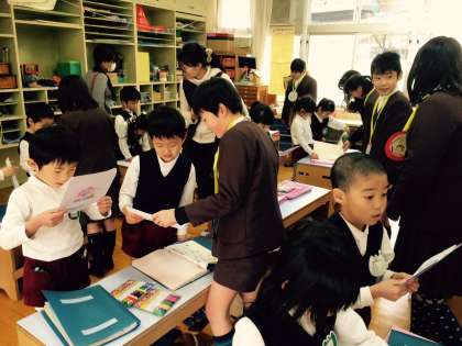 児童健康委員会4〜6年生の子どもは思い出カードを作り、プレゼントしました。