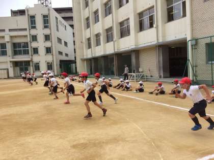 先週は、全校児童が淀川河川公園に行き、50m走とソフトボール投げの測定をしました。
