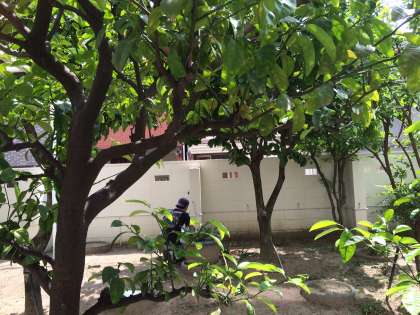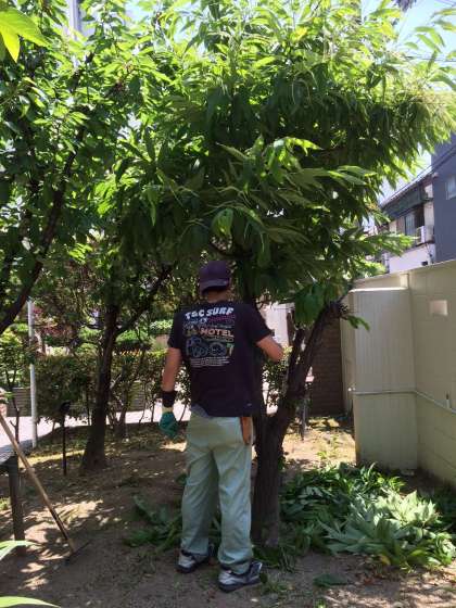 管理作業員さんが、前庭のくりの木の剪定と除草をしてくださいました。