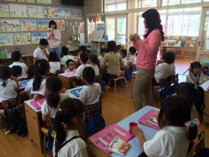 今年度も、児童健康委員会の4〜6年生が、歯みがき見守り隊として、幼稚園を訪問し、月に1回、園児の歯みがきの仕方を見てあげます。