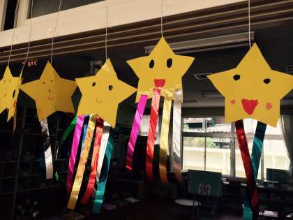 ブロック、お絵描き、ままごと、カプラ、七夕の飾り作り、粘土などで遊びました。