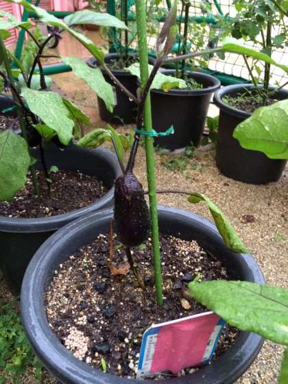 ミニトマト、ナスビ、ピーマン、エダマメの野菜です。